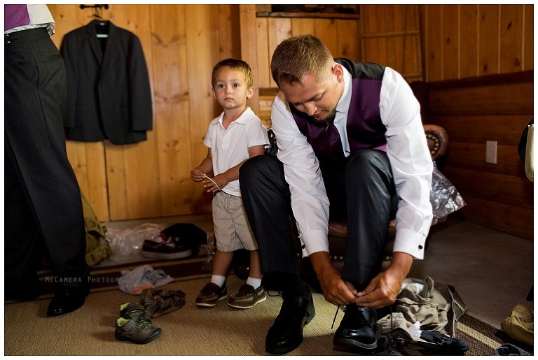 And here’s Justin with his handsome son in the back. (Alissa and Justin’s boys ran back and forth between mom and dad’s rooms helping them get ready. *Wink, wink*)