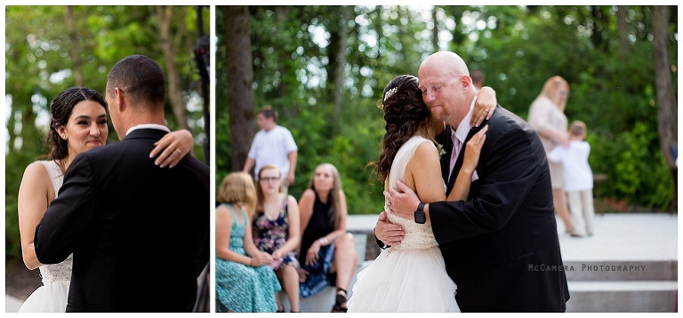 First dances with her dad and stepdad.