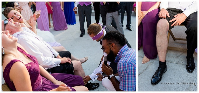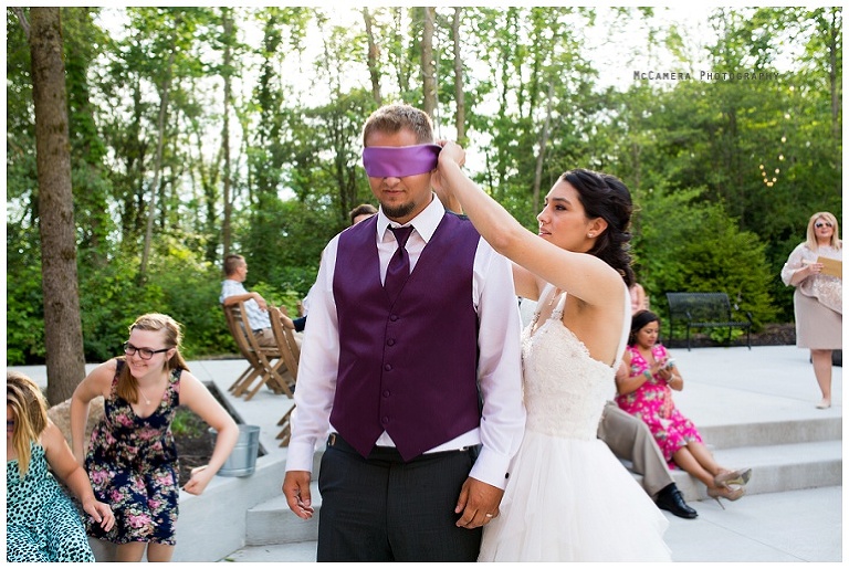 Alissa had her own plan for the garter toss. First, she blindfolded Justin.