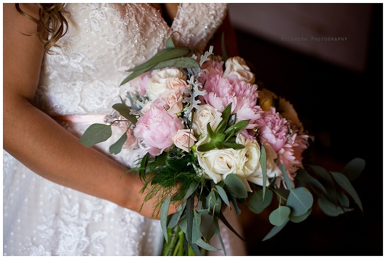 Hadley incorporated so many important items into her wedding day by placing each of them on her bouquet.