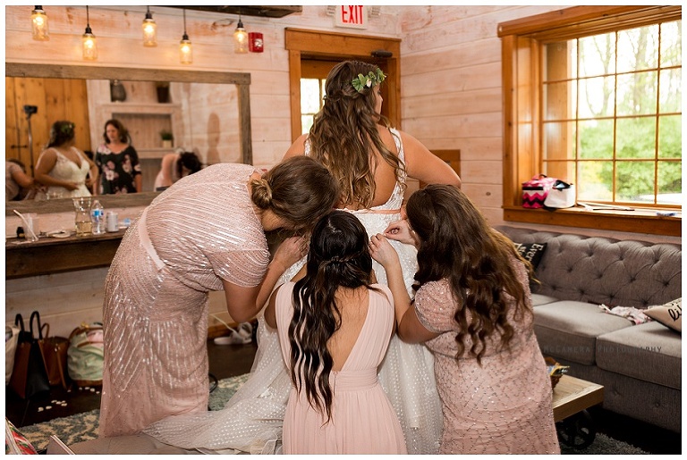 While Hadley was getting her makeup done, the rest of her wedding party had their rehearsal. They weren’t able to rehearse the ceremony the night before, so they did it the day of the wedding! That’s their fantastic wedding planner below – Vanessa Rische. She owns Copper Jade Events & Design if you’re looking for someone to help you out on your wedding day. Look her up!
