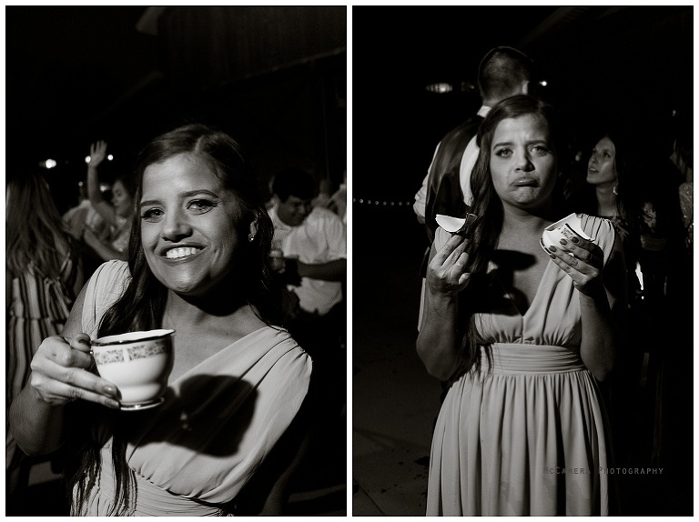 Ha! This bridesmaid was so proud of this teacup she found that she was drinking her beverages out of and asked us to take a picture. We did. Then a couple hours later, she may have dropped it.